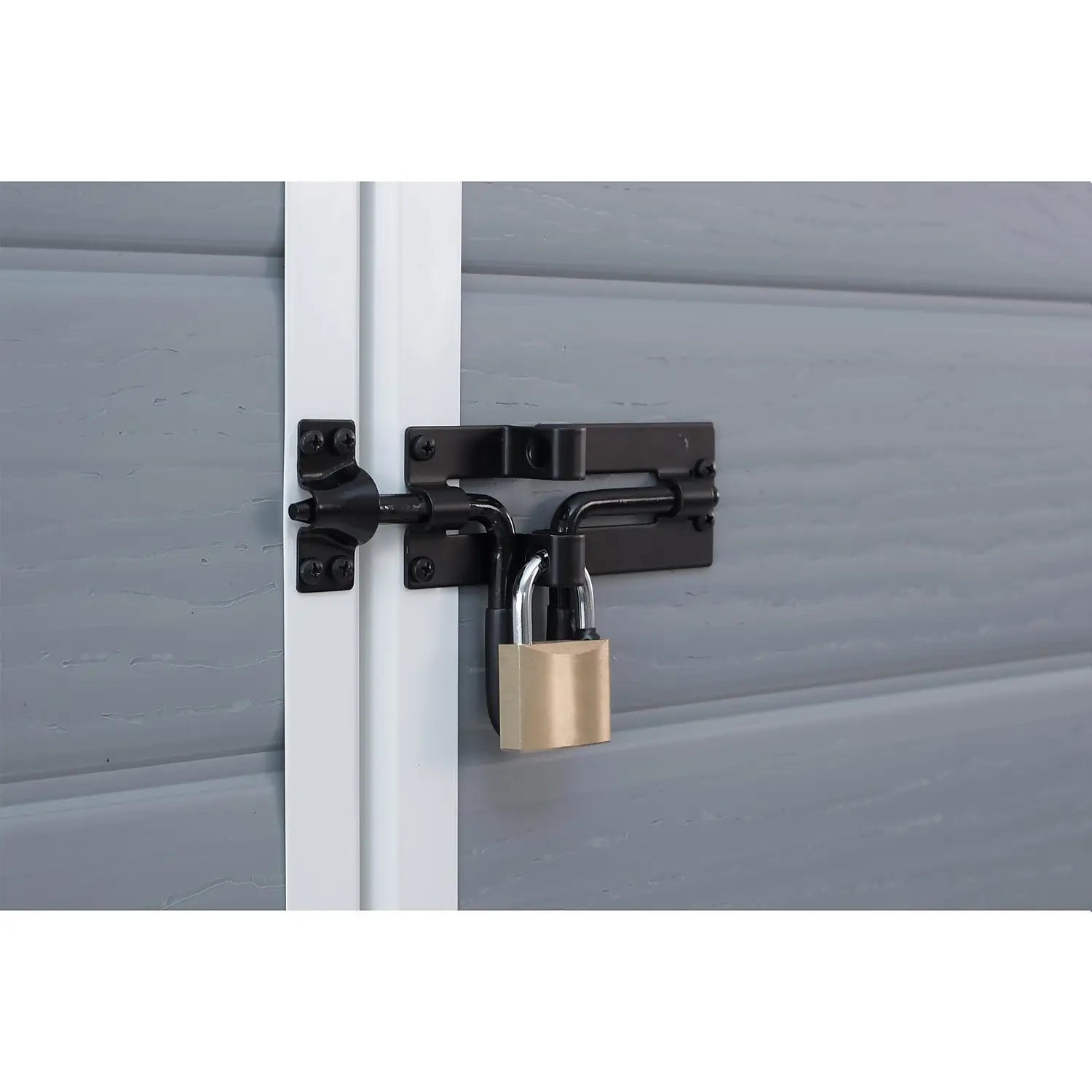 When elegance meets functionality. The Manor 6×5 garden shed is an elegant yet durable outdoor storage shed. Made of innovative lightweight panels “H” shaped, double- wall structure constructed to provide extra strength to withstand heavy duty weather and are built to last. The Manor 6×5 is a maintenance- free shed, no varnish or paint is needed. It features wide double doors for easy access, integral floor panel and ventilation that keeps your stored items clean and dry, a fixed window for lots of natural light, a ceiling that is high enough to let you move around with ease and is lockable for extra safety and secure.