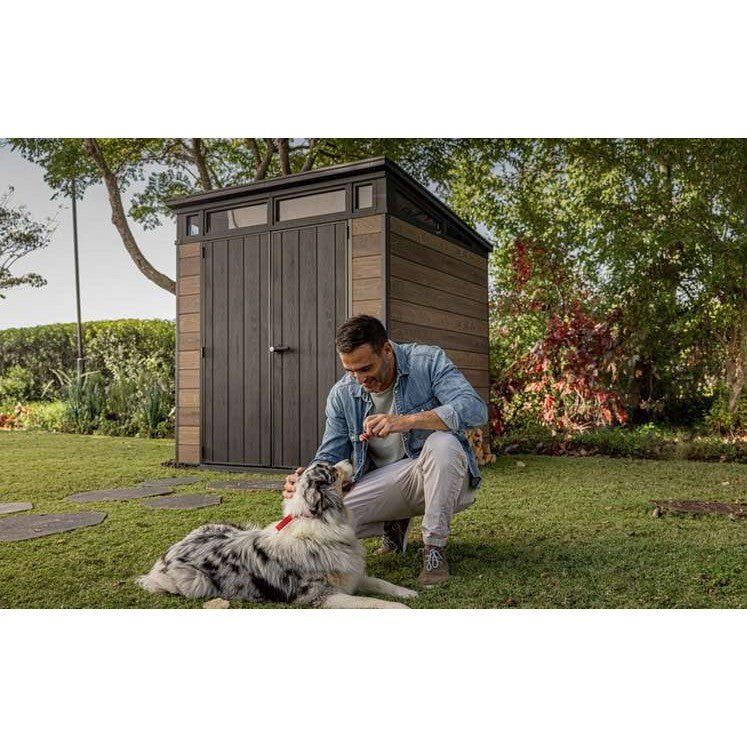 Keter 7′ x 7′ Walnut Signature Pent Plastic Shed – Walnut Woodlook
